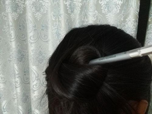 3. 固定发髻:将头发扎成一个发髻,可以使用发夹固定。
